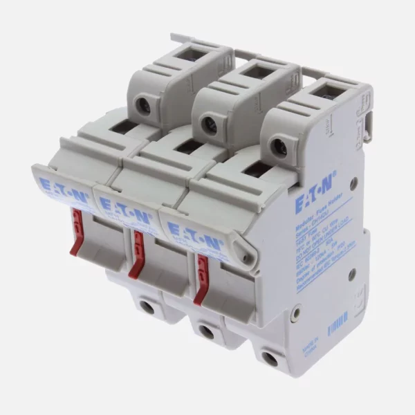 Portafusible modular para fusible 14x51mm. 3 Polos. Indicado para una carga de 50A a una tensión de 690V. Capacidad interruptiva de 120kA. Montaje a Riel DIN.